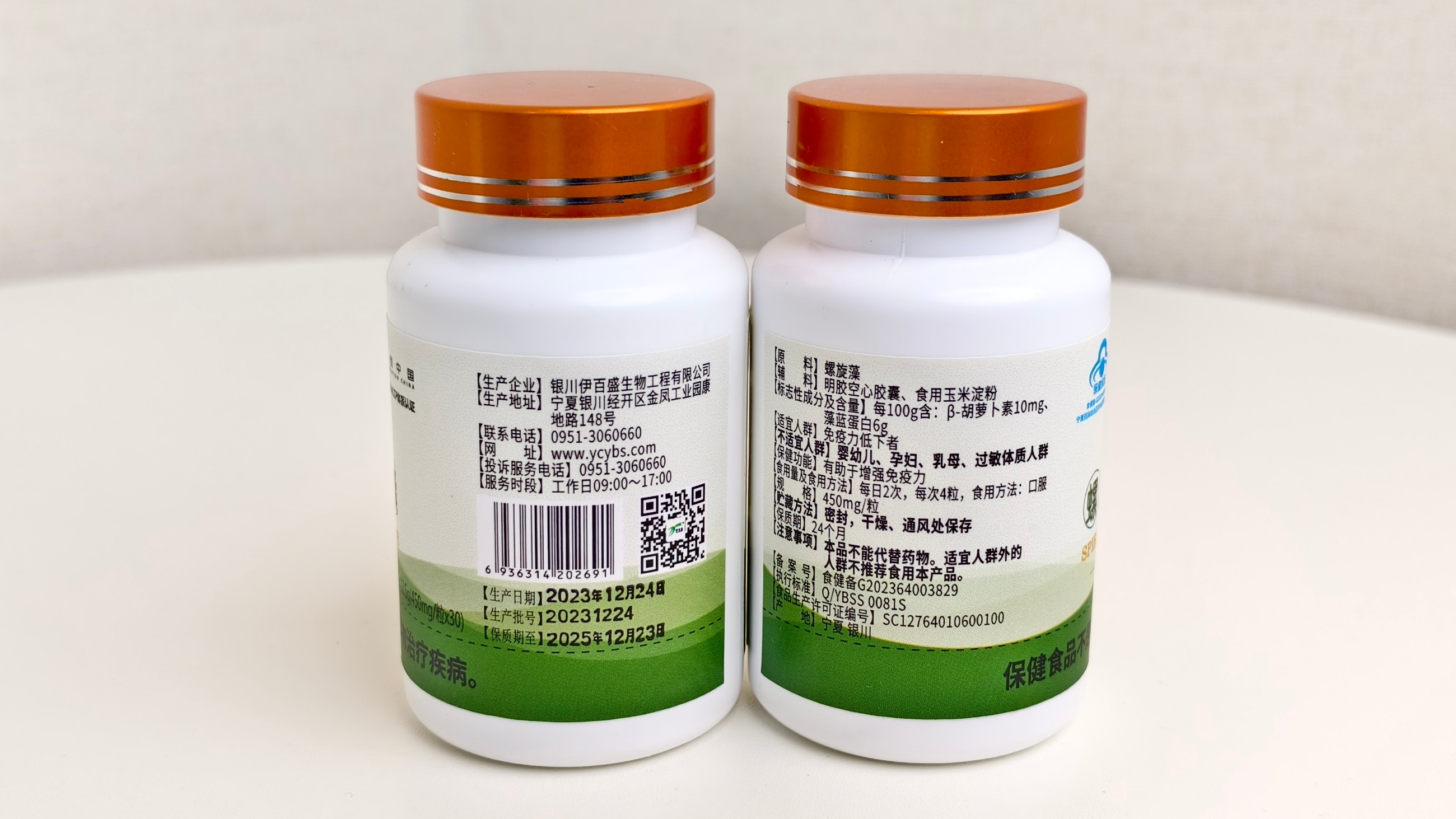 【標志性成分及含量】每100g含:β-胡蘿卜素10mg、藻藍蛋白6g